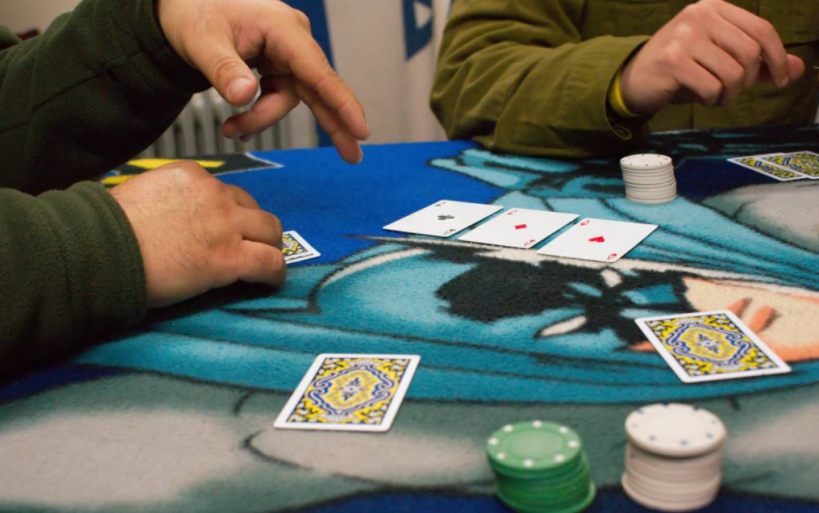 在喝咖啡途中,三名男子盛情邀约老刘一起打牌,说是消遣打发时间,打牌方式就是发牌比大小。