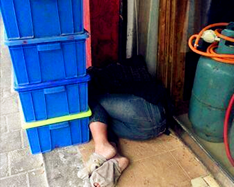 陈女士在这里帮人看店有一个多月了,见过这个小男孩很多次了,“经常在夜市,夜市收了就在店门口睡。”陈女士越说越心痛,“好造孽嘛,这个天这么冷,他就光着脚板,只套了个手袖在脚板心上就睡了。”