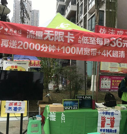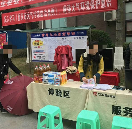 也有办理业务来搞促销活动的,在活动柜台上还摆出了各类生活用品当做奖品送给居民。