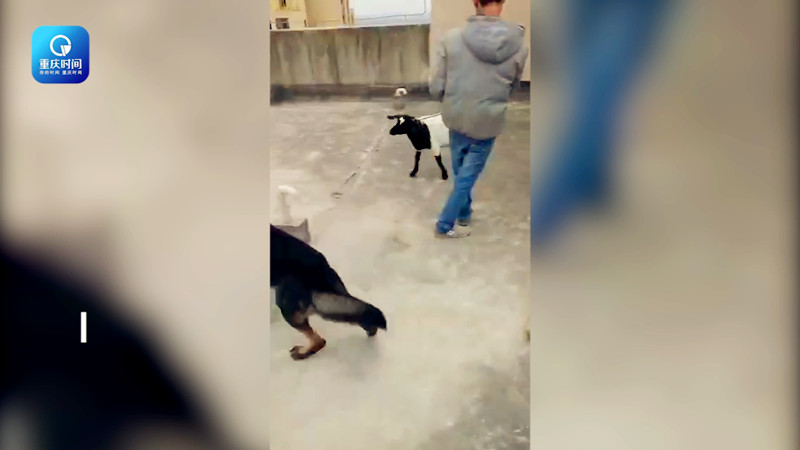 视频是一个男性业主发出来的,视频中有一男子先是牵着一只狗,同时另外一名男子则牵着一只羊,牵狗男子口中不断的发出“嘶嘶”声,似乎是示意狗去撕咬那只羊。