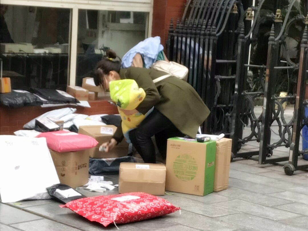 不仅是这几天女快递员抱着孩子送快递,双11的时候,有不少居民也看到了她的身影。