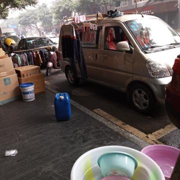 竟有人在一辆摩托车和一个水桶中间,放一根竹竿,就这样就开始晾衣服了。长安车上也横放着一根竹竿,上面挂满了衣服。其中,大多是小孩的服饰。