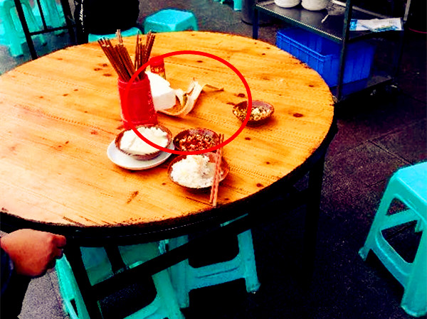 当时,有桌食客点了一份豆花饭,才吃了没有几口米饭,突然从天而降一块香蕉皮,正好砸在了餐桌中间。面对这突如其来的香蕉皮,食客心里五味杂陈。