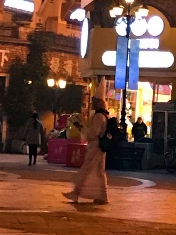 “白无常”深夜在街头行走 还开直播