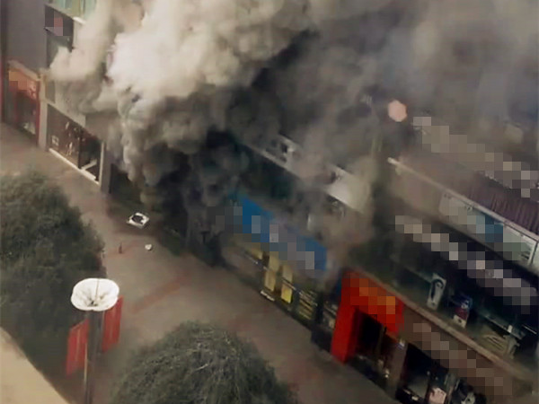 重庆一步行街突发火情 火焰猛烈黑烟冲天