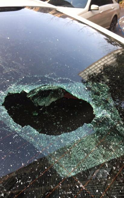 停在小区楼下的轿车 后车窗无缘无故出现一个大窟窿