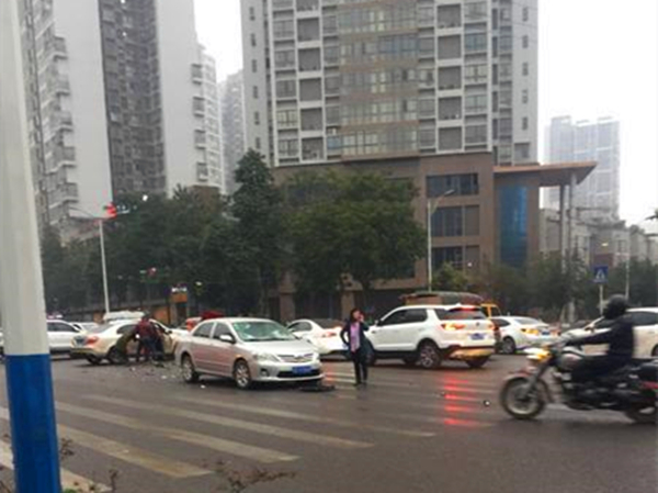 当时正是下班的高峰期,十字路口处车流涌动,现场混乱。