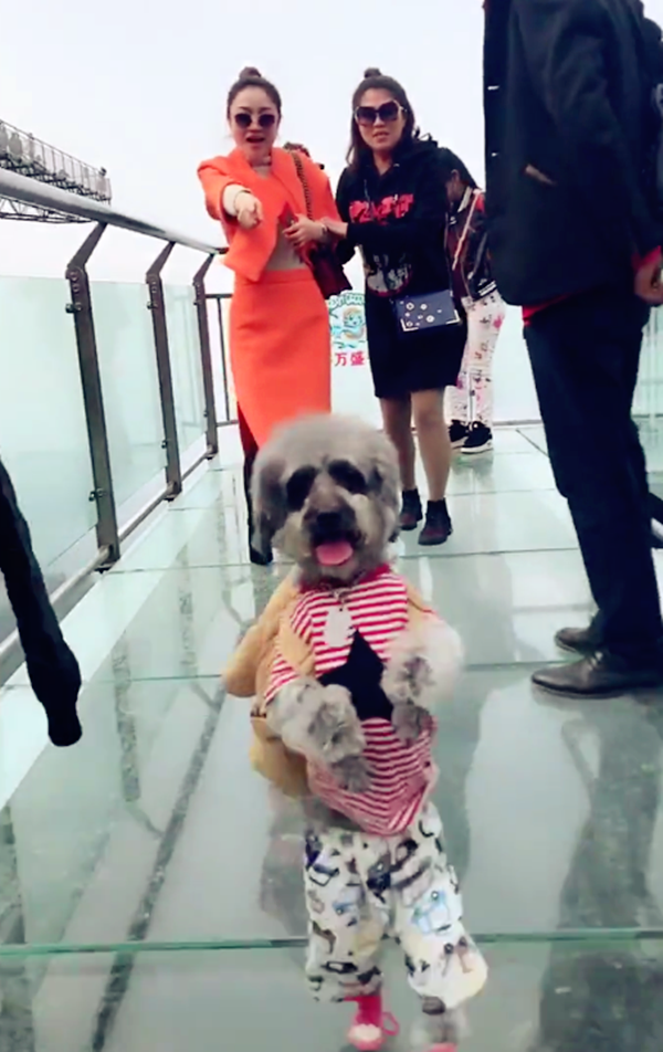 厉害了!泰迪犬挑战世界第一天空悬廊