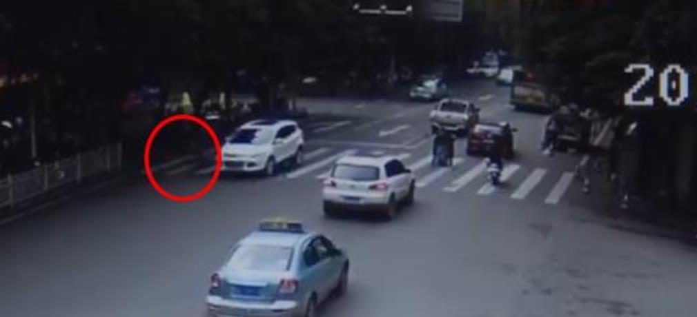 民警事后通过对监控的调取,发现斑马线当时处于红灯状态,行人是禁止通行的。