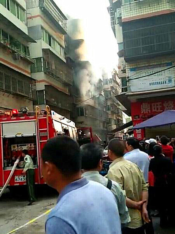 不一会,滚滚浓烟就让居民楼笼罩在居民楼中,现场聚集了不少围观群众,周围一阵喧嚣。