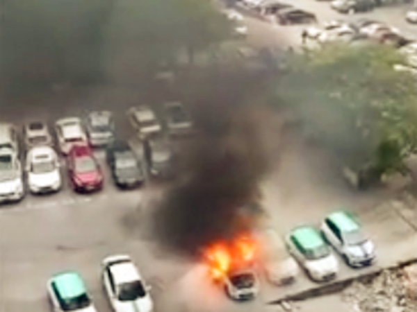 露天停车场黑烟冲天 原是电动汽车突发火情