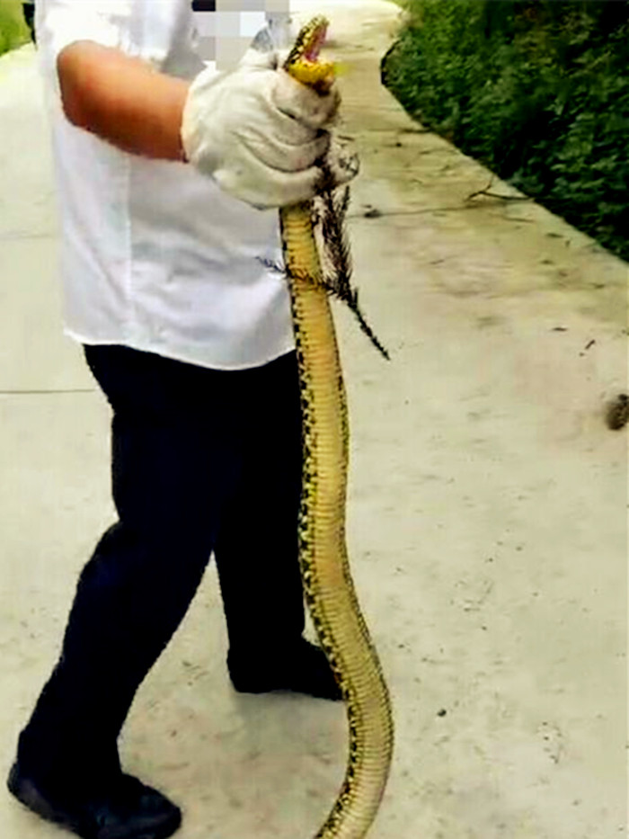小编在此提醒广大市民:如果在户外发现了蛇,不要惊慌乱跑,这样容易惊吓到蛇,更容易遭到蛇的攻击。看到蛇后,一定要保持镇定,以缓慢的步伐慢慢地后退走远即可。