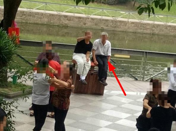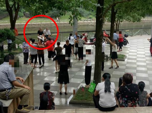 2018年6月3日下午,重庆璧山,有市民路过南河公园时,看见一群人在跳舞,却发现其中两位大爷,竟将垃圾箱当成了座椅,坐在上方。