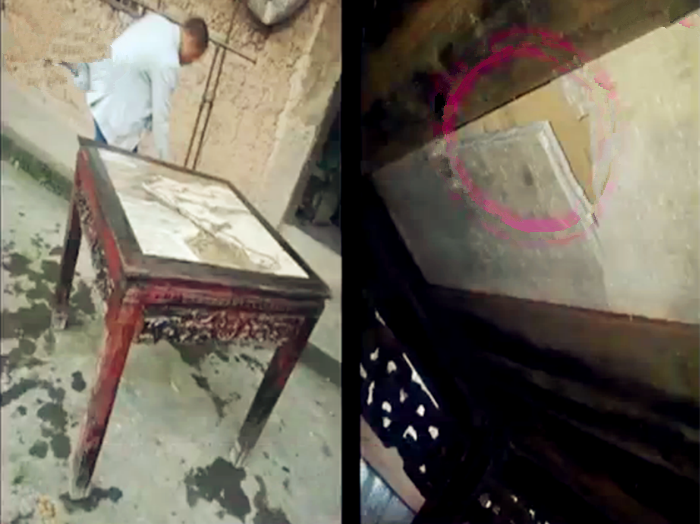 眼前这张桌子,就是陈先生请物流公司发货的桌子。“这是一张价值两三万现金的古董桌子,物流公司只愿意赔1000元,远远偏离了市场价值,也拖着一直没赔我。”陈先生认为,“这张桌子最有价值的地方就是大理石桌面,这是非常稀少的,现在从背后可以看到,他们把我的大理石桌面摔坏了,已经发生了破裂与掉落。”