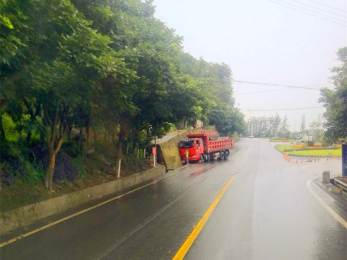 货车里没有装载太多货物,但路上比较湿滑,一般这样的路况下,不论是私家车还是摩托车,甚至是货车都是不敢乱开,不能盲目转弯、加速。