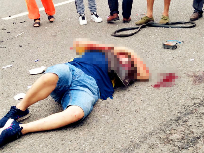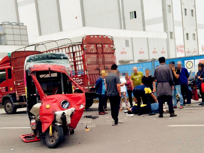 男子骑三轮车与货车相撞 躺倒地面现场惨烈