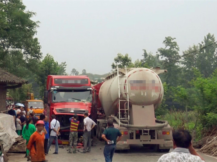 据目击者介绍,事发时,两辆罐车相向行驶,在弯道处时,一辆车让摩托车,另外一辆车让三轮摩托车。加上下了雨,道路湿滑,两车避让不及才相撞引发事故。