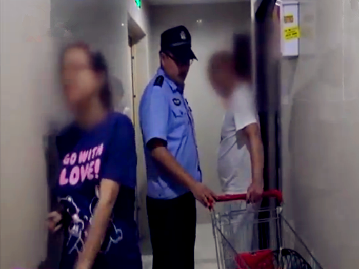 黄女士无奈之下选择了报警,鸳鸯派出所的民警抵达了现场查看情况,刚好遇见张先生拉着一只流浪猫回家,黄女士见状赶紧躲开。