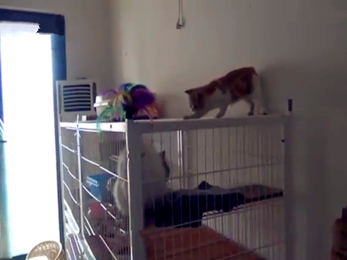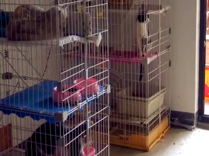 打开房门走进房子一看,虽然在门外闻不到什么味道,但进屋瞬时那猫吐就扑面而来,房内有不少猫笼,一些猫都在笼内外活动着。