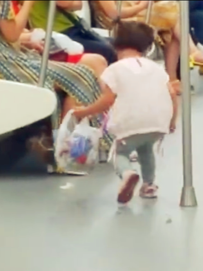 乖萌女孩车厢里捡垃圾 触动目击市民
