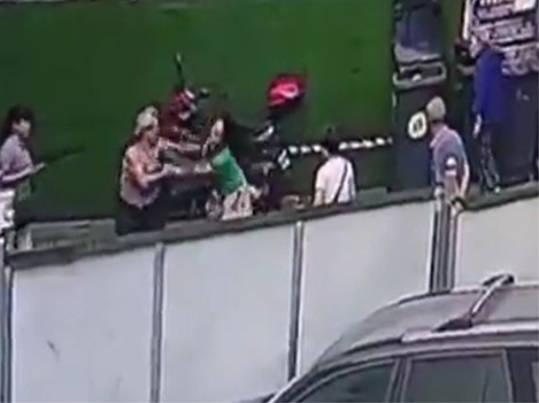 因一张纸板女子大爷当街互殴 大爷挂彩女子遭扯烂