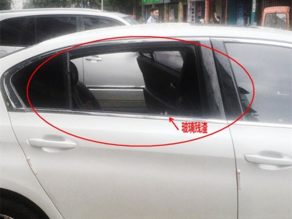 车主车窗被砸 玻璃渣散落一地