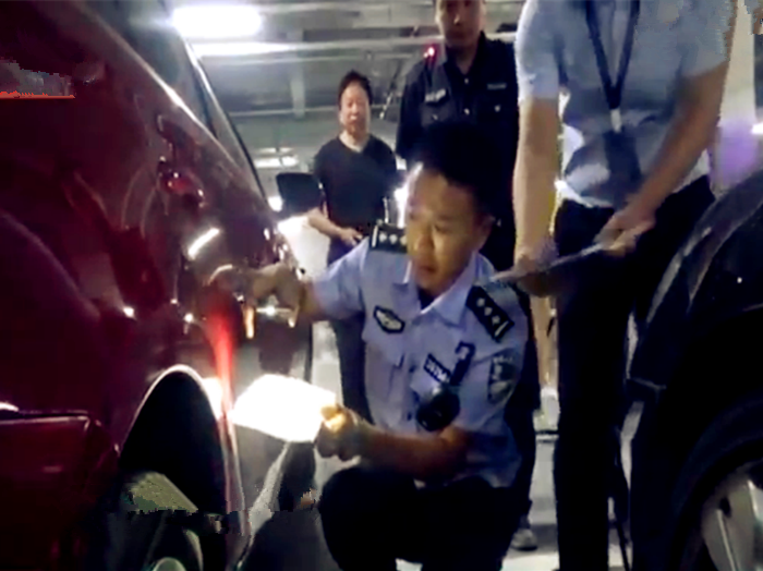 在现场两位车主各说各话,民警来到了车库监控室,调取了监控证实。
