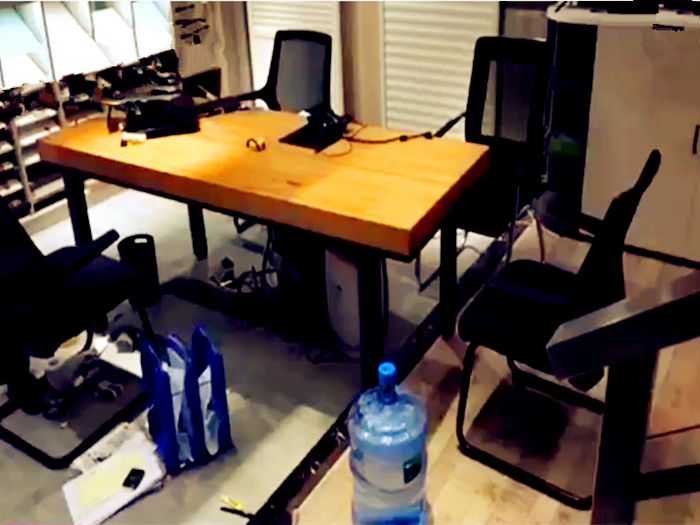 民警赶到现场后,映入眼帘的是文件夹、成套电脑、办公工具,稀稀拉拉散落在地面狼藉一片,店内乱得不堪入目。