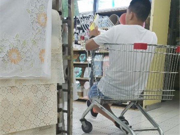 神操作!“巨婴”男子将购物车当滑板车