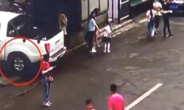 监控显示:搬家公司工人在搬油桶时,车轮滑了一下,正好碰到一辆三轮车,导致油桶的油溢出,而搬家工人并没有及时处理现场。