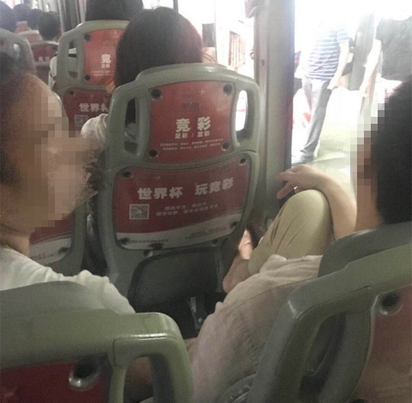男子乘公交坐姿霸气 将脚搭在前排座椅缝隙处