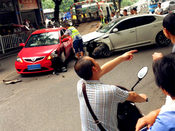 “三辆车把整条道路都挡完了,地上的残片都分不清楚是哪辆车身上的了。”目击市民说,“很快就围来了许多路人,大家都对这个事故很关心。”