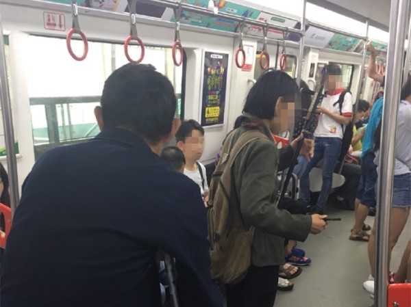 发布时间:2018-07-09 12:50:20日前,有网友爆料,乘坐重庆轨道交通1号线出行时,看见一名女子,在车厢内走来走去,拉着二胡,向乘客乞讨。