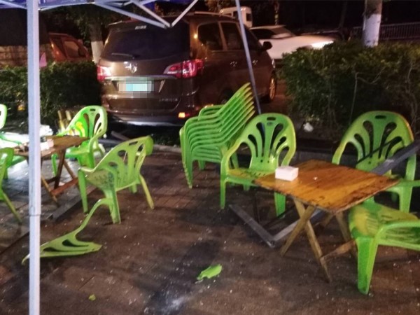 “当时在场的还有孕妇和小孩,还好支撑了一个烧烤蓬,否则后果不敢想象”,爆料网友说出了自己的担忧。