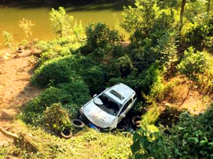 “路沟到路面的垂直高度有3米,越野车司机车速过快,操作也没搞对,突然就失控飞下去了。”爆料市民说,“路沟边就是河水,还好没继续飙,卡在了树丛里。”