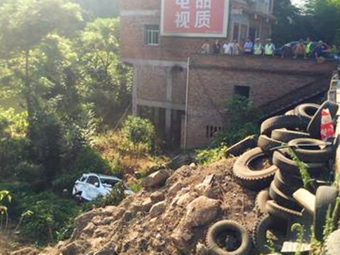 发布时间:2018-07-21 12:48:132018年7月20日,重庆忠县网友爆料,在黄金高蹬坝附近,一辆越野车由于操作不当,撞毁护拦坠入路沟。