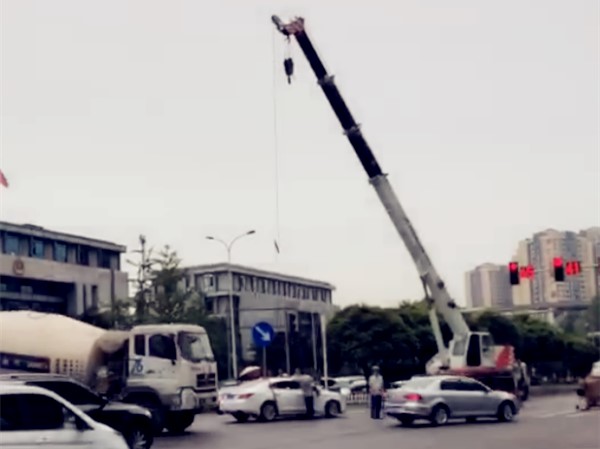 从现场图片来看:车子停靠在斑马线附近,四个车轮悬空,现场散落着一些零件。
