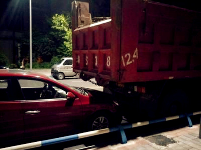 “两辆车车型不同,但颜色都是红色,小车车头快伸进了货车车尾里。”目击市民说,“这般停车也不知道是谁在‘炫技’,但我觉得这样停车不太稳妥,也停得太近了,不论是哪一辆车先动,都有可能对另外一车造成损伤,特别是小车现在的处境,真是太危险了。”