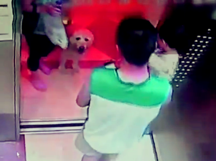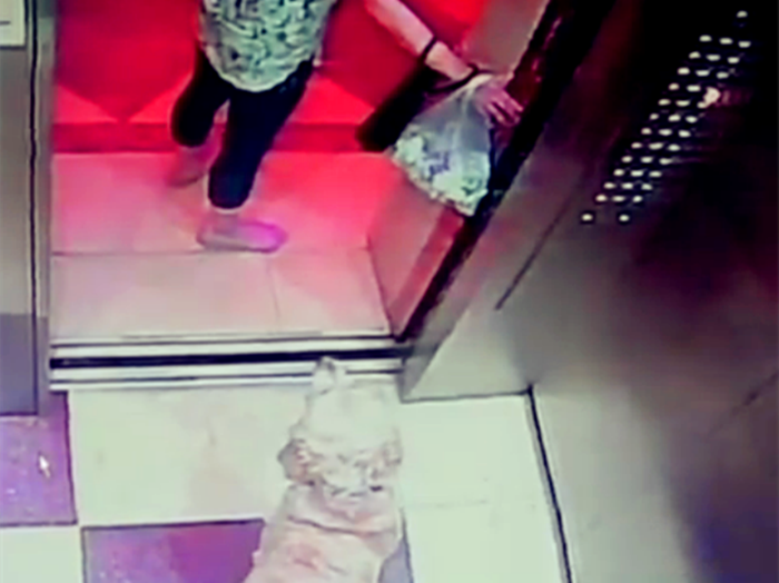 “第一次在过道路口,我看到男子在抽烟,我牵着狗,它患有心脏衰竭,后腿还有些瘫痪,走路有点慢和不方便。”张女士回忆说,“我就说男子抽烟有味道,会影响到这只狗,就换了个电梯去乘坐货梯。这么一说,男子突然生气了,跑来按开电梯的门对我大喊,还辱骂我。”