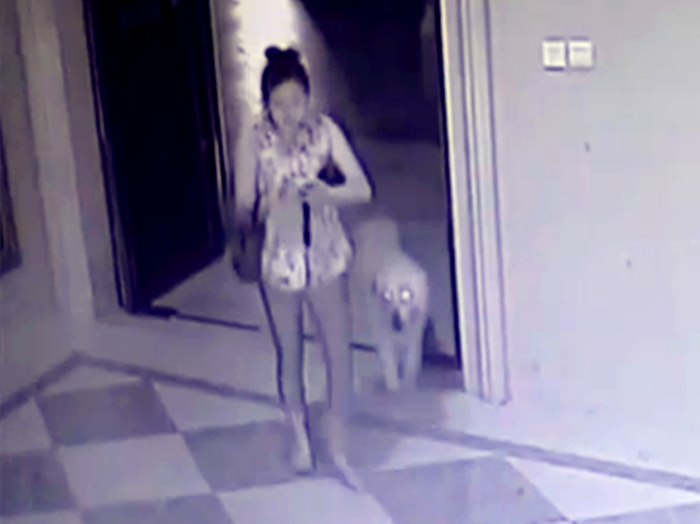 通过监控我们看到,张女士外出时没有牵狗绳。