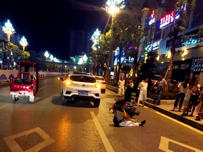 “也不知道发生了什么,这个电瓶车就侧翻在地了,电瓶车车主是个男的,摔坐在了地面上,也一直不起来。”目击市民说,“小车也停在现场,车后两个大灯亮了起来。”