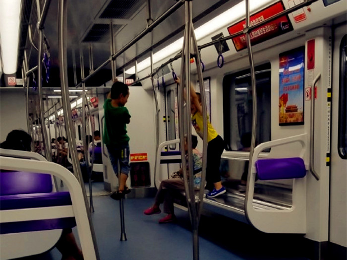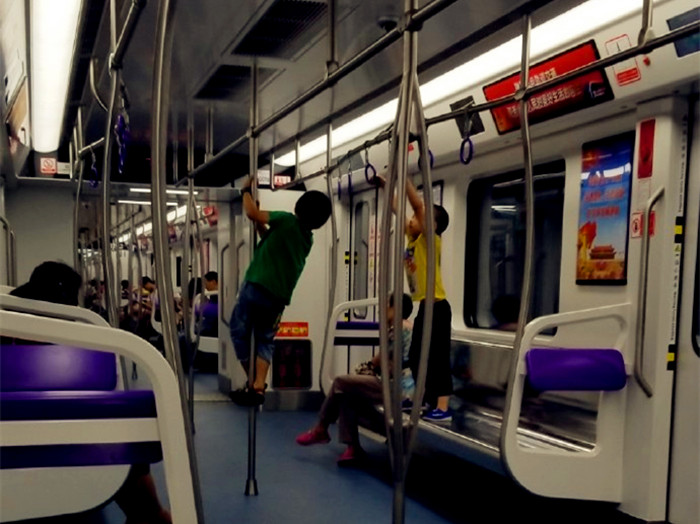 发布时间:2018-08-07 13:47:33日前,有市民乘坐重庆轨道交通10号线的时候,在车厢里看到2名孩童在座椅与扶栏间,来回跳耍,一旁的家长却没制止。