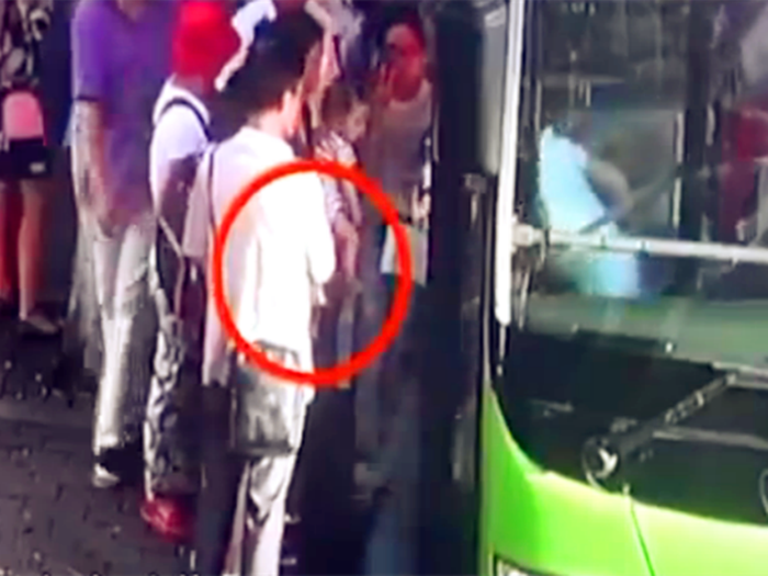民警通过调取公交站附近的监控发现,事发时胡女士抱着孩子,与自己母亲一起上了公交车,上车瞬间被一男子将自己的钱包掏走了。