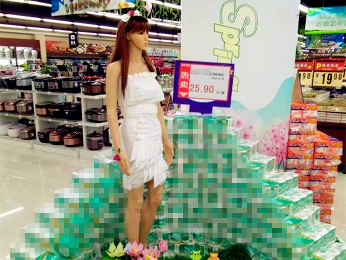 发布时间:2018-08-10 15:27:132018年8月9日,重庆涪陵。有市民逛马鞍某超市时看到这样一幕,在超市推荐商品的区域附近放着一个人偶,这个人偶身上穿着一条“裙子”,仔细一看,是用纸巾打造出来的。