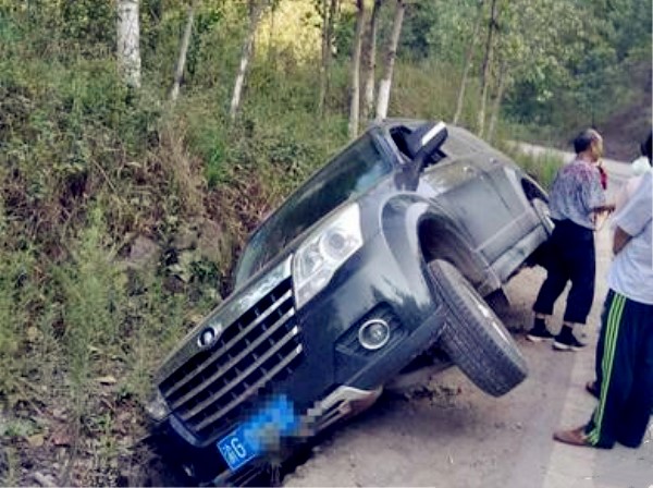 (黑色小车陷入沟里)