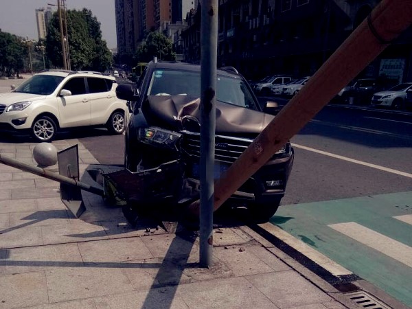 发布时间:2018-08-14 16:49:122018年8月12日,重庆綦江,有网友爆料,在沙溪路青少年文化宫附近,一辆渝D牌照的轿车冲出道路,撞上路边灯杆。