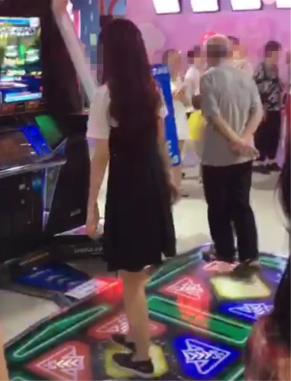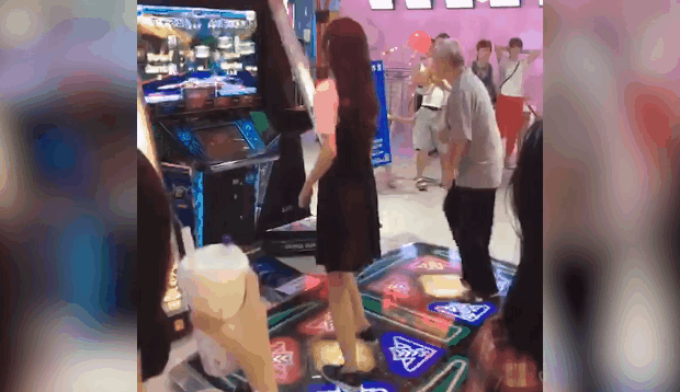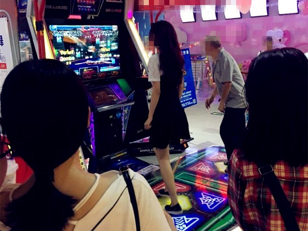 酷毙了!大爷玩跳舞机动作灵敏不输身旁的美女