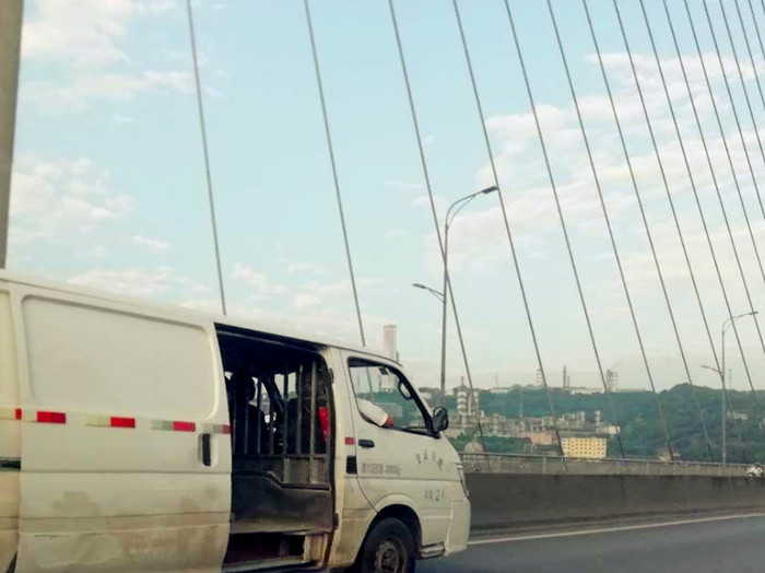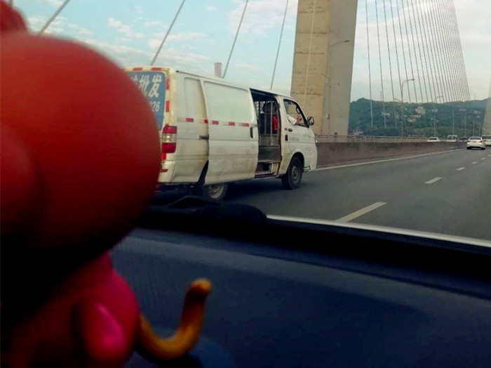 发布时间:2018-08-19 11:28:042018年8月18日,重庆涪陵。有市民驾车从新区出发,行驶途中发现一辆面包车的右侧后门没关,却依旧在路上飞驰着。