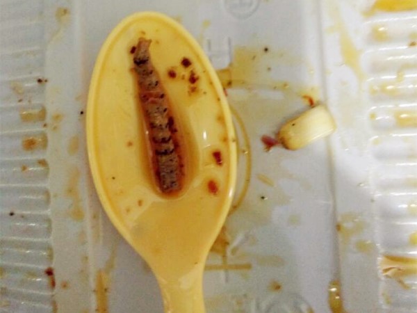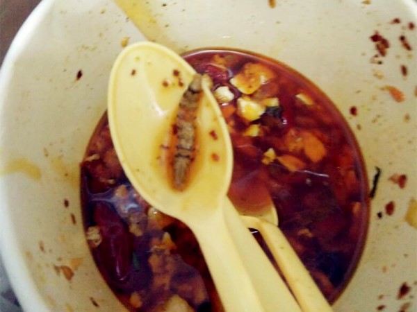 烧烤店打包的豆腐里吃出虫 全身沾满油