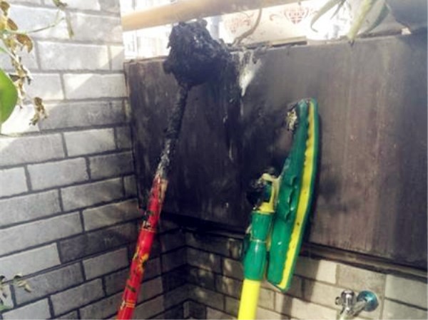 高层住户扔下未灭的烟头 点燃楼下业主的两根拖把
